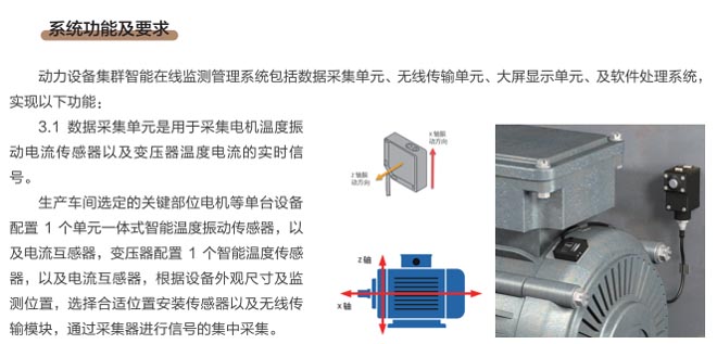 動(dòng)力設(shè)備集群智能在線監(jiān)測(cè)系統(tǒng)是通過(guò)智能遠(yuǎn)程運(yùn)維系統(tǒng)(RMS)完成工業(yè)生產(chǎn)線的電機(jī)、減速機(jī)、風(fēng)機(jī)、高低壓變電、泵閥等設(shè)備運(yùn)行狀態(tài)信息及故障信息檢測(cè),通過(guò)檢測(cè)設(shè)備的溫度、震動(dòng)、轉(zhuǎn)速、電流、電壓等數(shù)據(jù)實(shí)時(shí)分析處理運(yùn)行設(shè)備狀況,同時(shí)通過(guò)信息報(bào)警推送,智能分析設(shè)備運(yùn)行狀況并實(shí)時(shí)報(bào)警等功能,能迅速找到解決問(wèn)題的方法。通過(guò)在線檢測(cè)系統(tǒng)全面實(shí)現(xiàn)對(duì)關(guān)鍵設(shè)備的全生命周期管理,提高了設(shè)備有效運(yùn)維時(shí)間和效率,降低設(shè)備運(yùn)維成本,降低設(shè)備故障時(shí)間,減少現(xiàn)場(chǎng)人員維護(hù)量,降低維護(hù)人員的依賴(lài)性。
